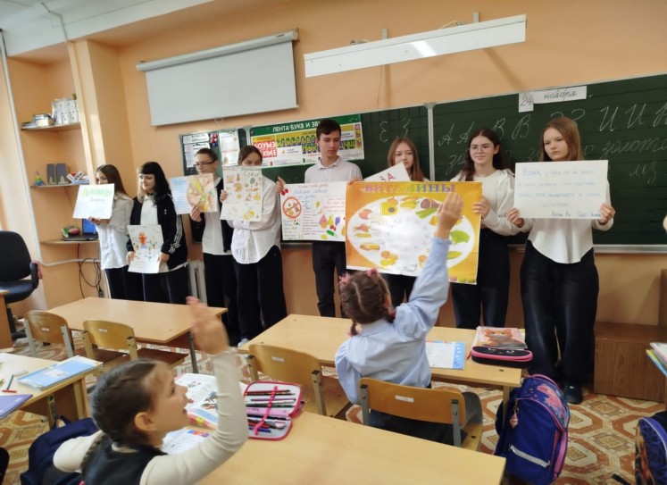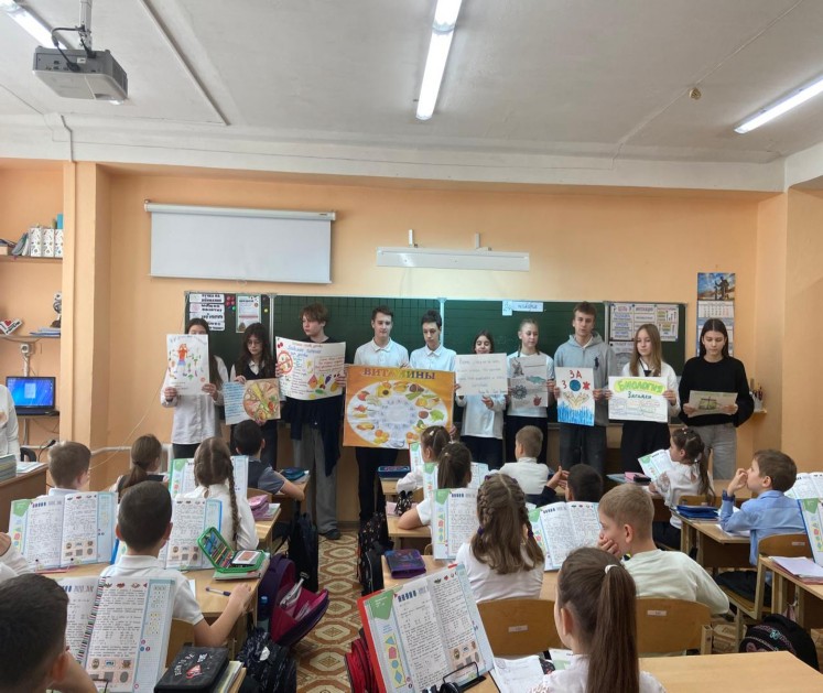 В рамках месячника Здорового питания в МОБУ СОШ № 38 агитбригада 8-х классов под руководством Абрамовой И.Г. посетила учащихся начальной школы. В интересной и увлекательной форме рассказали ребятам о правильном и здоровом питании, сопровождая свое выступление яркими плакатами. Загадки вызвали восторг и положительные эмоции. Надеемся, что дети запомнят рекомендации и будут следовать советам о Здоровом питании.